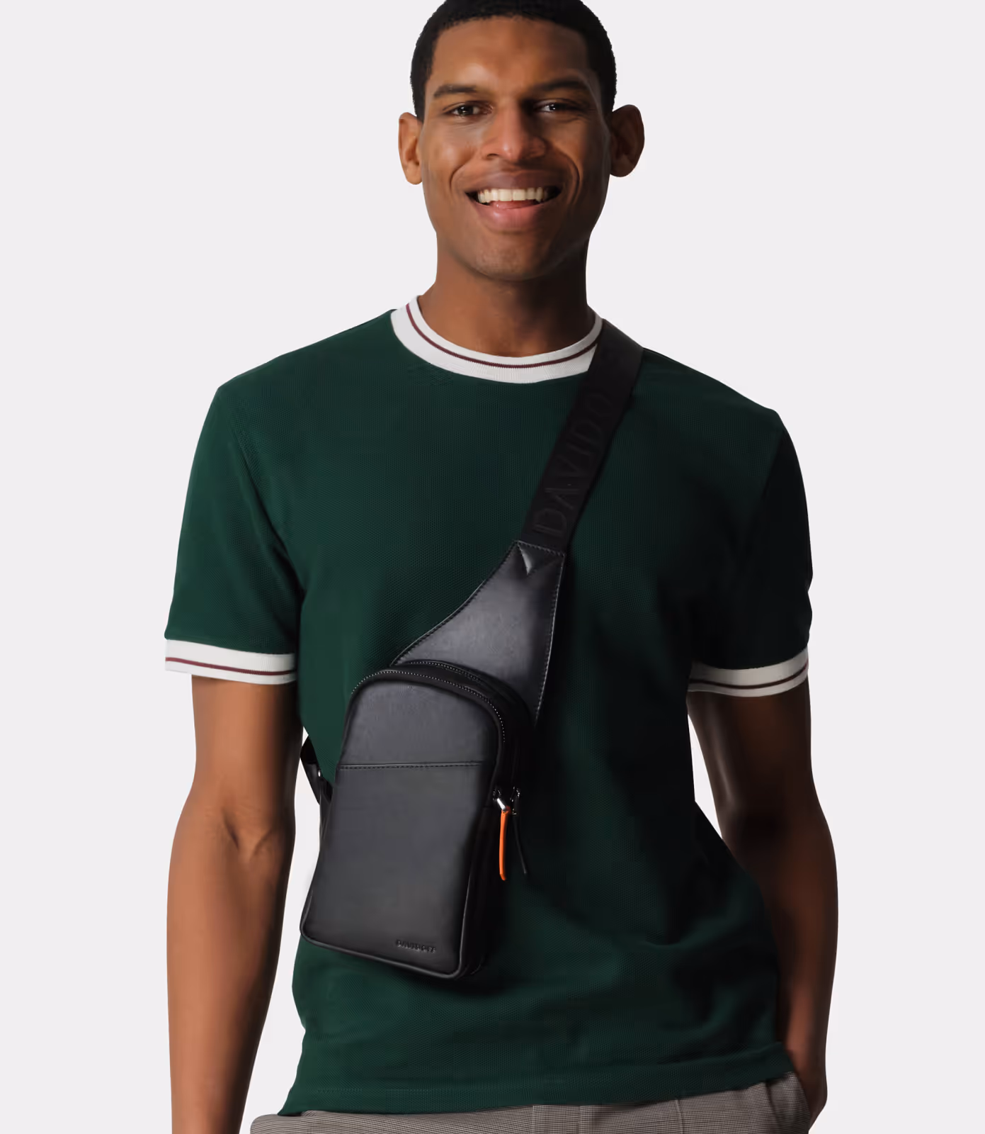 The shoulder bag from the DAVIDOFF ESSENTIALS collection represents impeccable quality and timeless elegance. This sling bag made of soft calfskin with a zipper in the unmistakable DAVIDOFF orange and embossed logo exemplifies genuine craftsmanship. It features a large main compartment with phone pocket and key holder, a small zippered pocket, and leather shoulder straps.