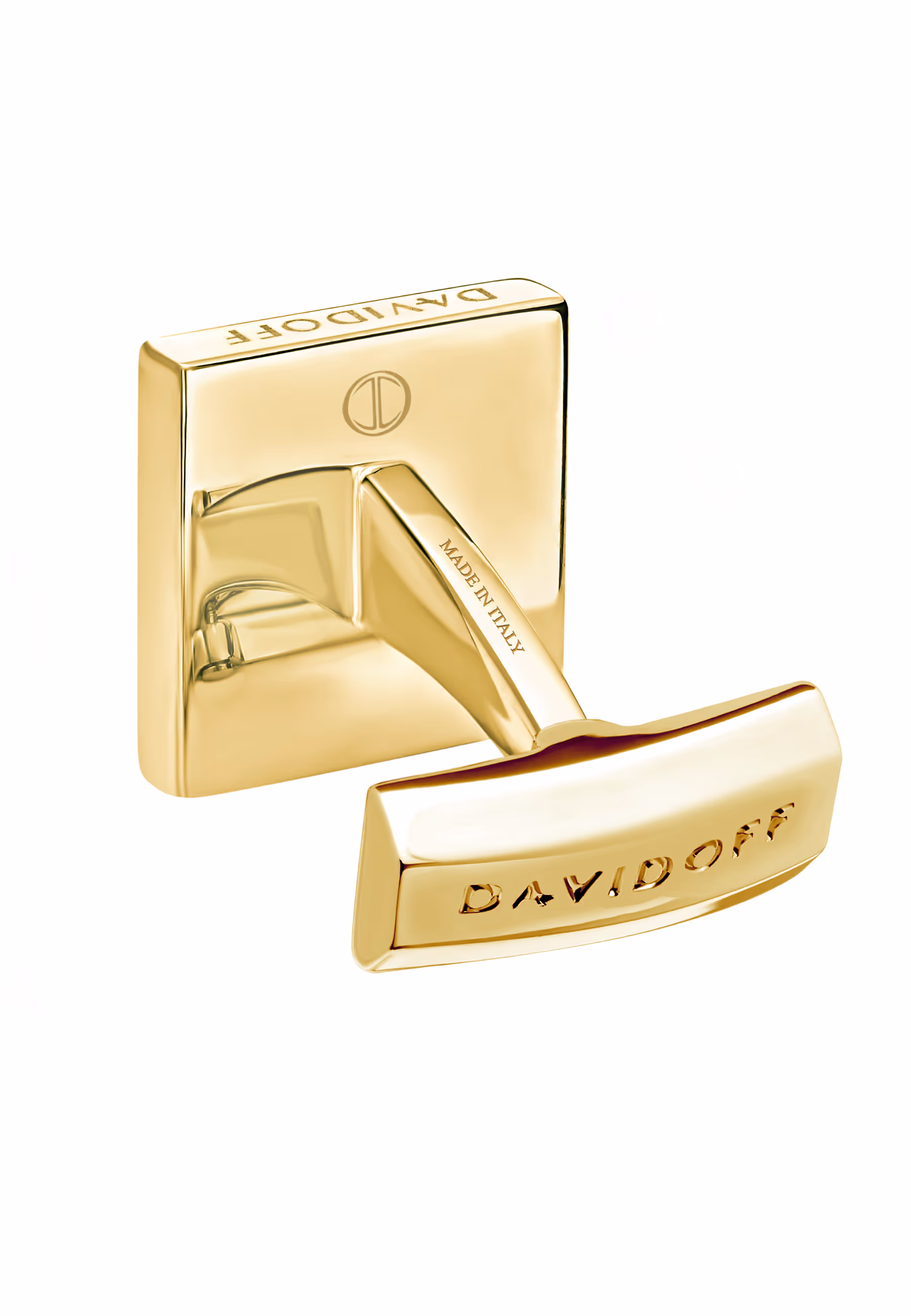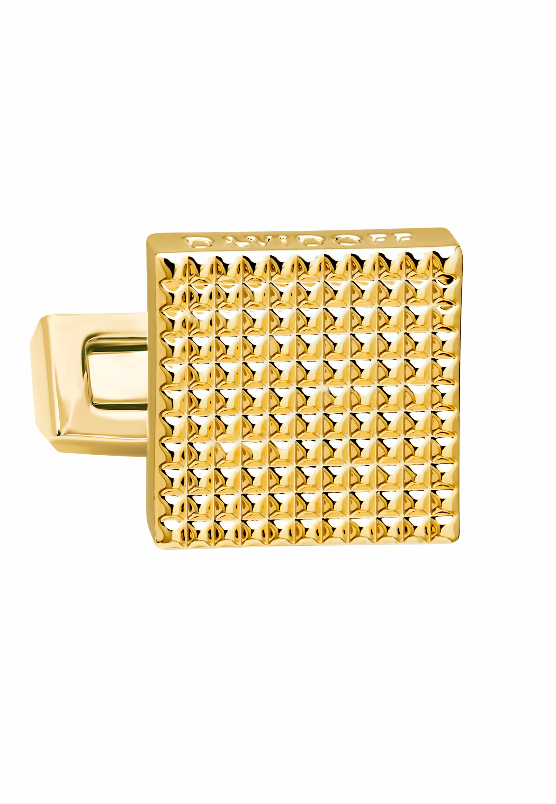 Square shape with timeless Clous de Paris pattern. Stainless steel light gold plated. Fitting in exclusive hyphen shape with DAVIDOFF logo etching. DAVIDOFF icon on the backside.