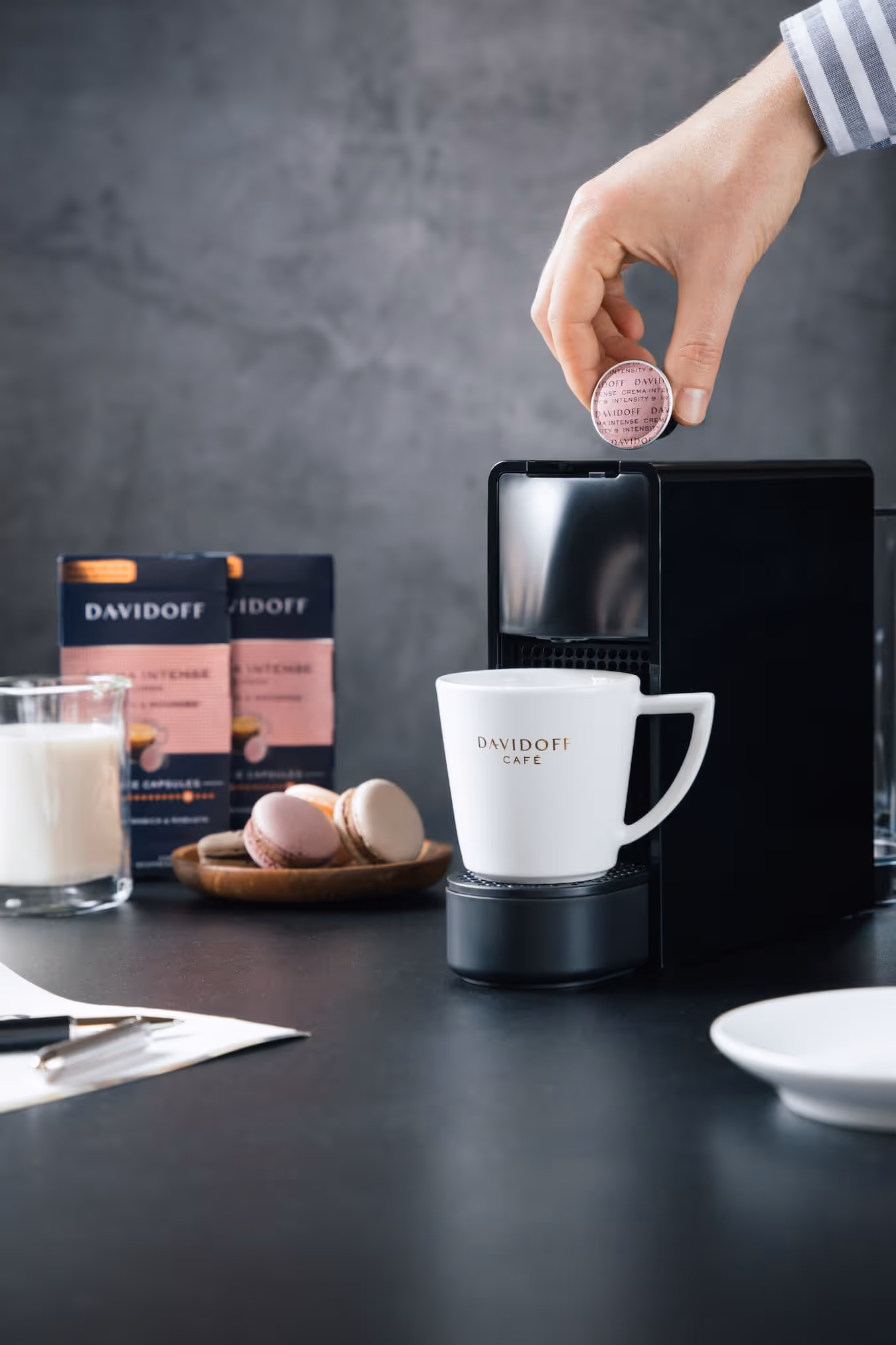 DAVIDOFF Crema Intense invites you to indulge in a rounded, strong Lungo with a perfect, velvety crema on top. This unique blend of premium Arabica and Robusta beans rewards you with its intense yet smooth aroma thanks to a long roasting process. Discover DAVIDOFF Crema Intense for your ultimate coffee indulgence.